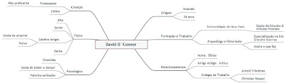 Como um exemplo, segue o mapa mental de um dos personagens secundários de “O Nome da Águia” (http://www.onomedaaguia.com/), David O’Connor.